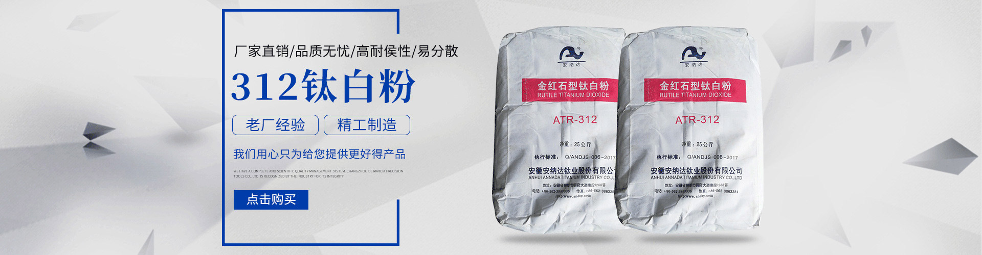 常州安鈦化工有限公司經銷批發(fā)的鈦白粉、沉淀硫酸鋇、立德粉、滑石粉、高嶺土、炭黑、云母粉、彩色顏料、氫氧化鈣、硅微粉、氧化鐵紅、氧化鐵黑、金紅石型鈦白粉、銳鈦型鈦白粉、進口鈦白粉暢銷消費者市場,在消費者當中享有較高的地位,公司與多家零售商和代理商建立了長期穩(wěn)定的合作關系。常州安鈦化工有限公司經銷的鈦白粉、沉淀硫酸鋇、立德粉、滑石粉、高嶺土、炭黑、云母粉、彩色顏料、氫氧化鈣、硅微粉、氧化鐵紅、氧化鐵黑、金紅石型鈦白粉、銳鈦型鈦白粉、進口鈦白粉品種齊全、價格合理。常州安鈦化工有限公司實力雄厚,重信用、守合同、保證產品質量,以多品種經營特色和薄利多銷的原則,贏得了廣大客戶的信任。